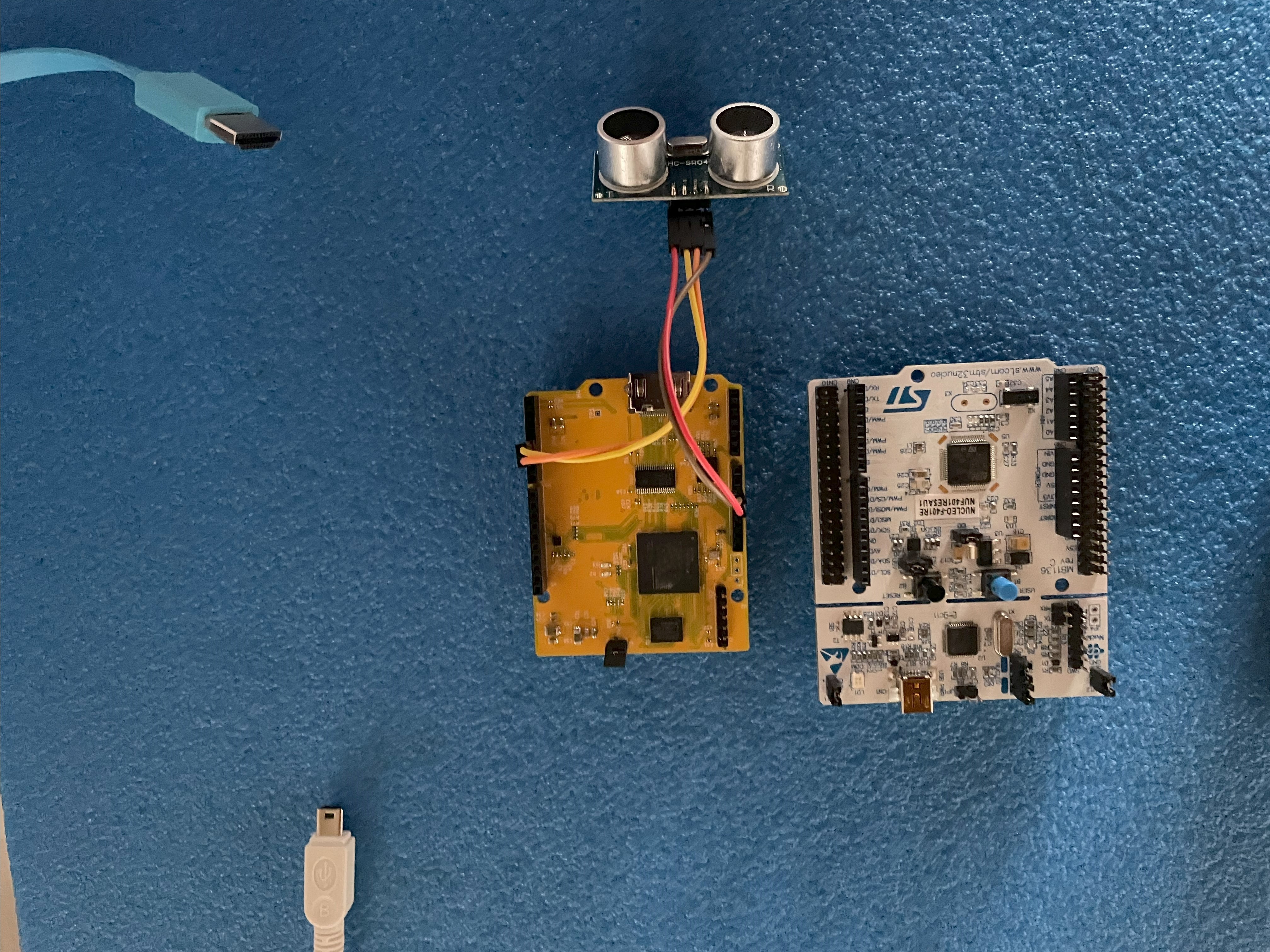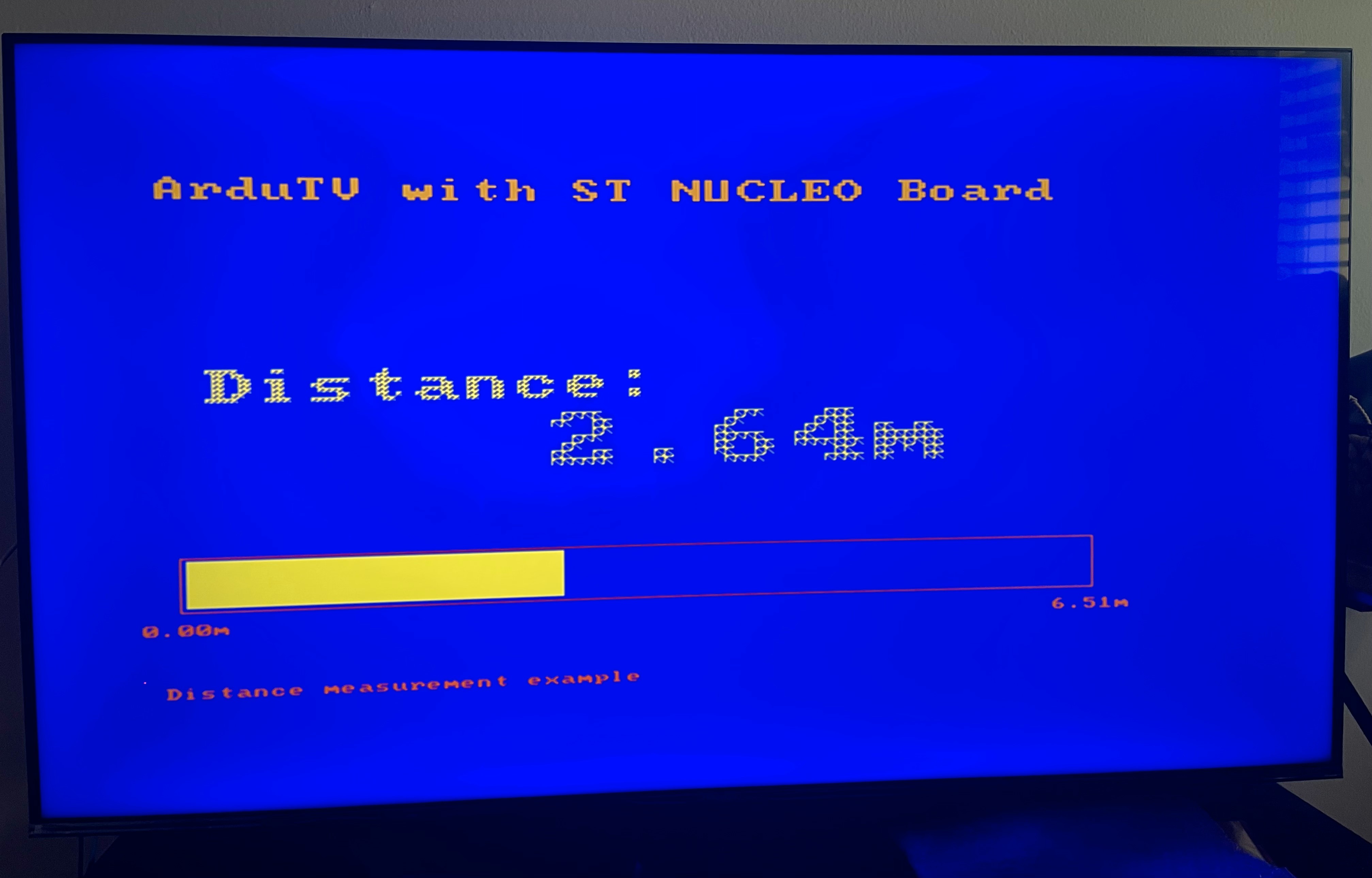 In this simple simple example we use one STM NUCLEo board (STM32-F401RE) , the ArduTV and one sensor HC-SR04.